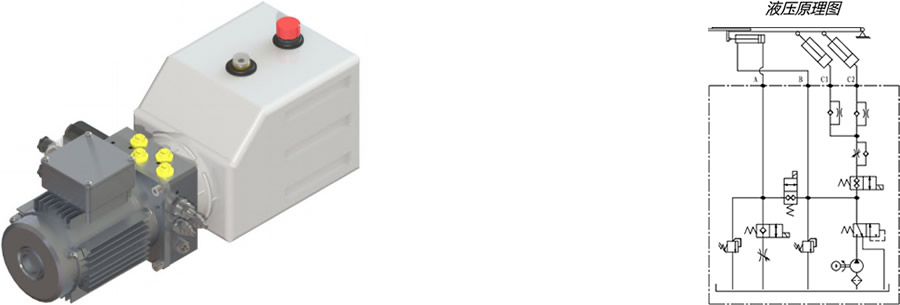 此動力單元應(yīng)用于帶唇板伸縮式的倉庫登車橋。